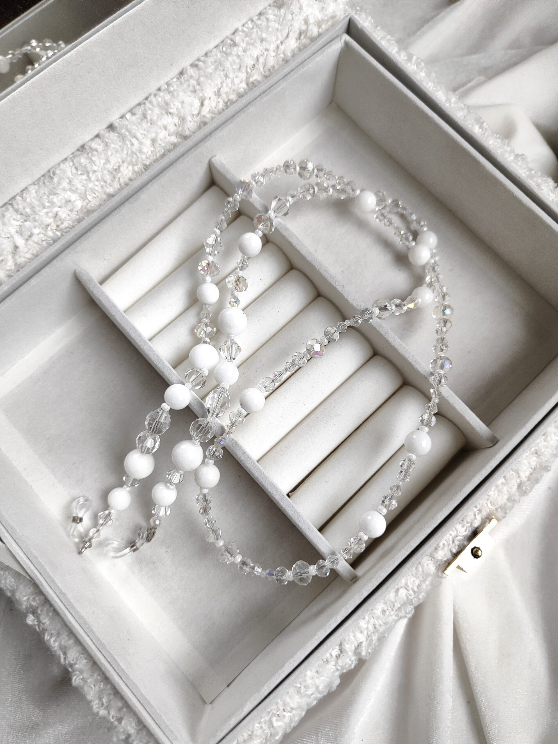 Perlų ir stiklo akinių grandinėlė